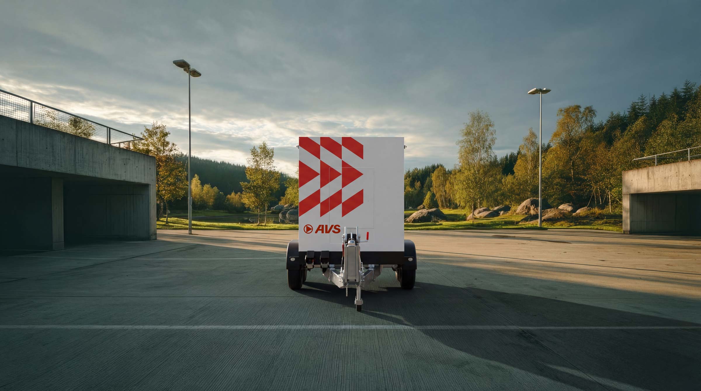 • Höhenverstellbare Zugdeichsel, Zubehörwanne, Feuerlöscher, Warnschraffierung